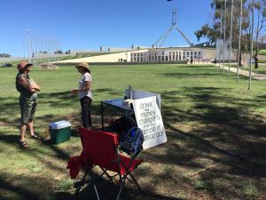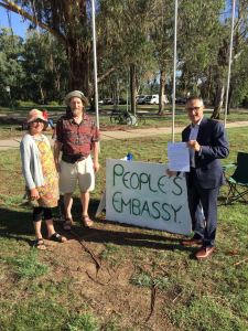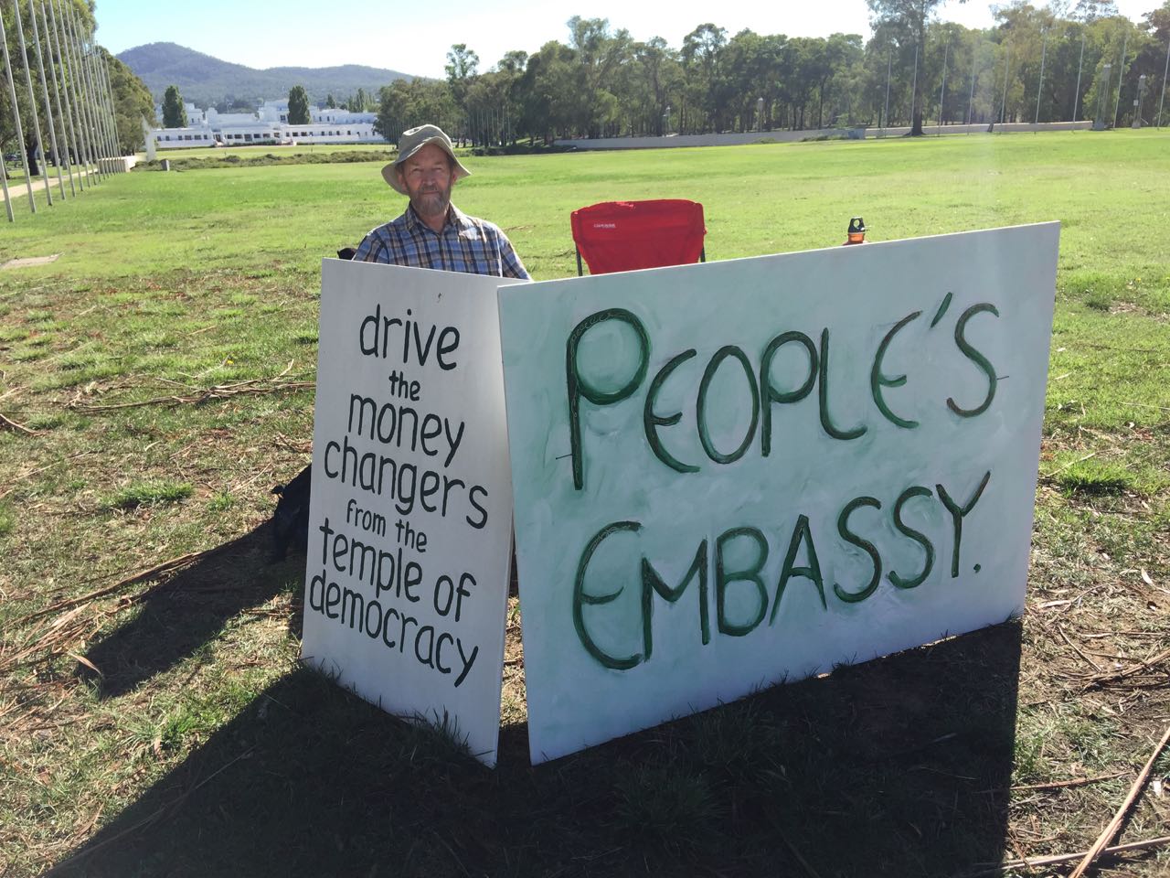 There was some interest in the People’s Embassy and its message ‘Drive the money changers from the temple of democracy’, though the numbers were not large. Mostly a passing ‘good on you’.